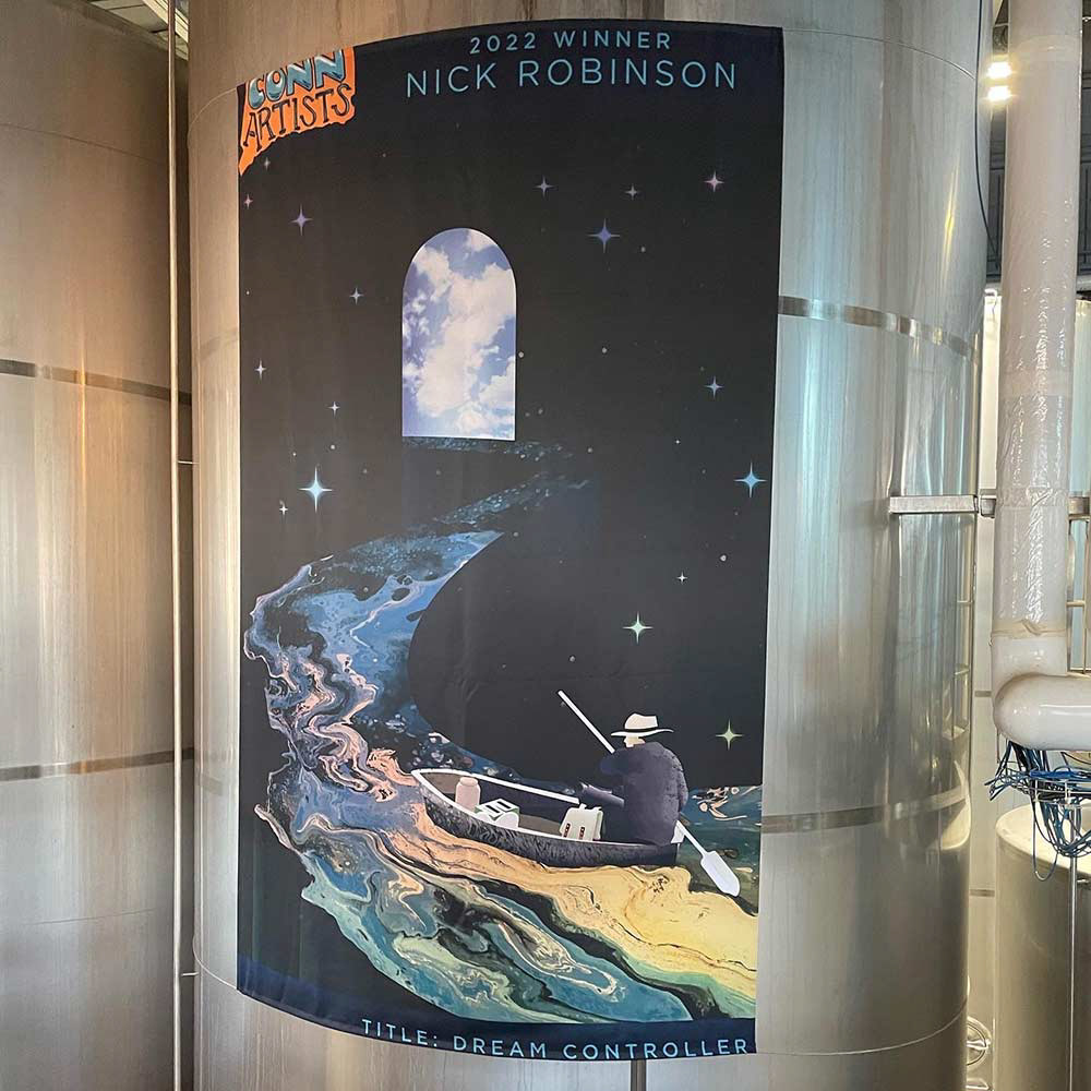 → In 2022, I was selected as the First Place Winner of Two Roads Brewing's ConnArtist contest. My artwork was placed on a 16oz IPA can that commemorates the yearly event. A tapestry of my artwork also adorns one of the fermenters in the taproom. Go check it out!
