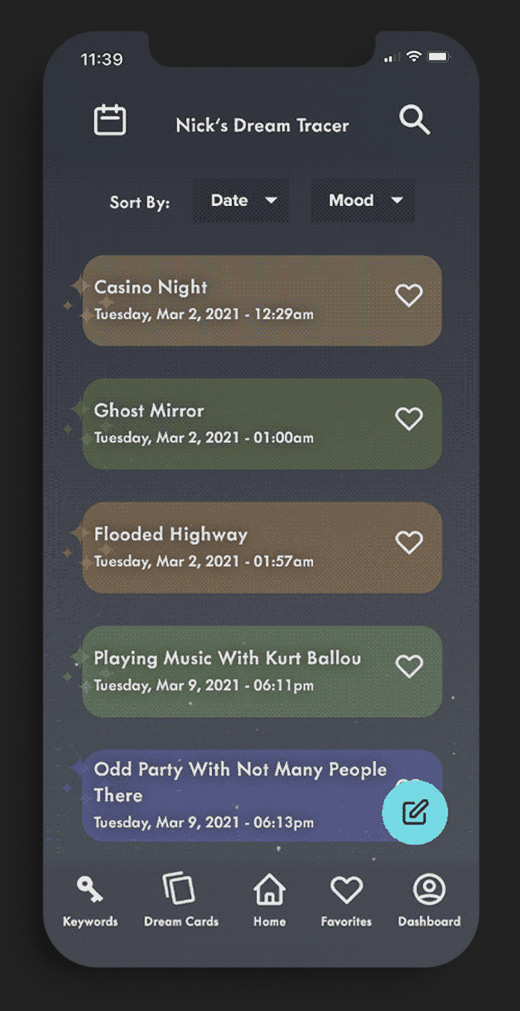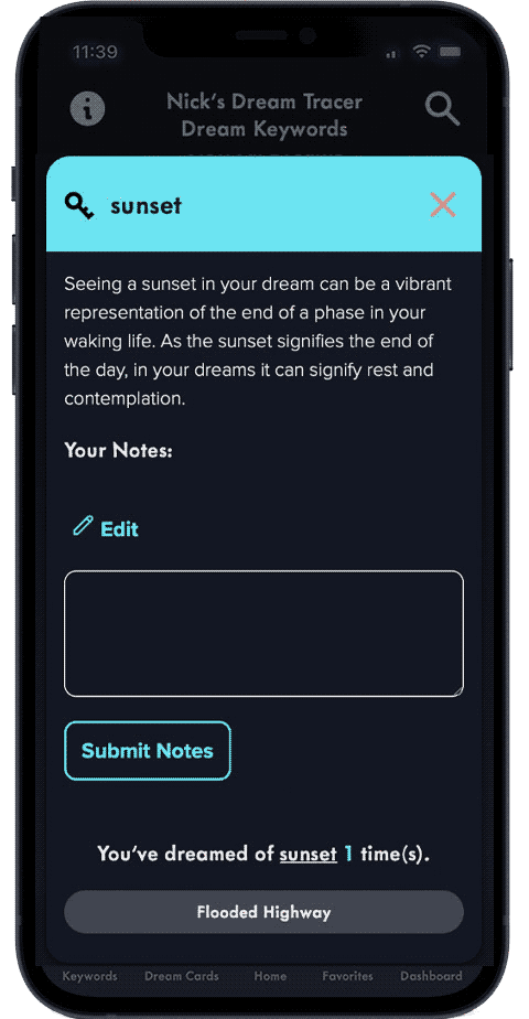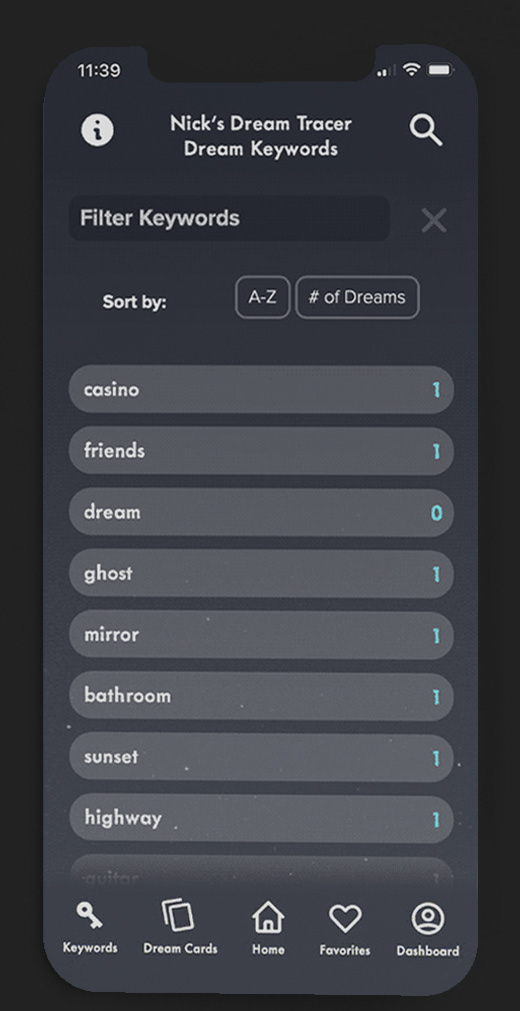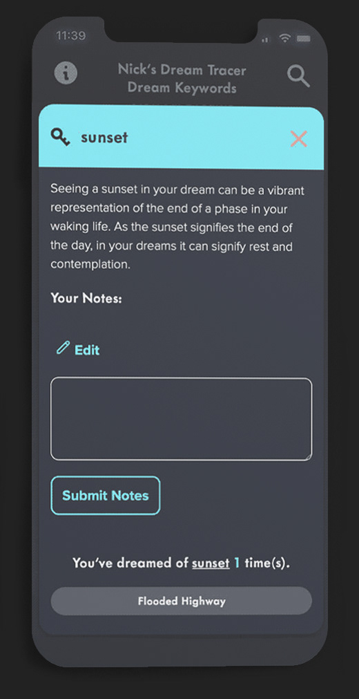 → Dream Tracer can also serve as a dream dictionary, while recording the # of times the keywords have been dreamt, or recorded.