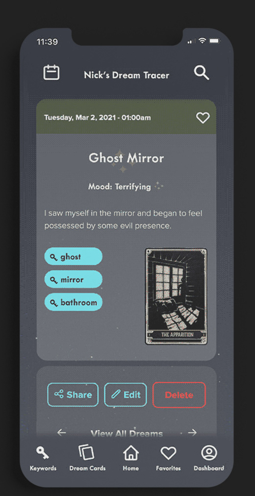 → When a user submits a dream entry, the keywords are programmed to select and store a "dream card" for the user.