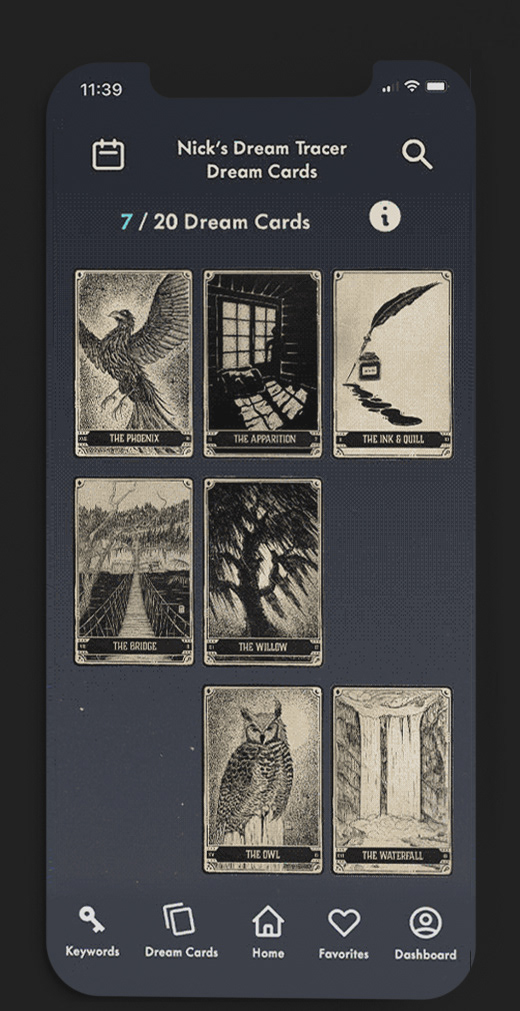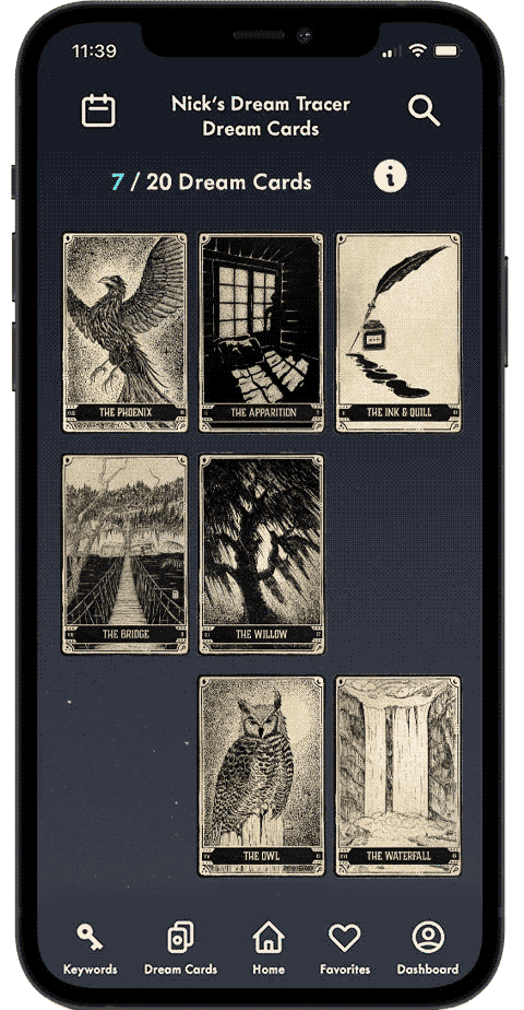 It's a bit like a gamification system in the form of tarot-like cards that connect similar dreams together.