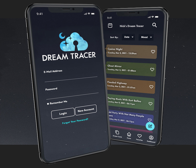 Dream Tracer is a dream journal mobile app that ties the user's entries together in a uniquely creative fashion. From conceptualization and planning, to visualization and development, Dream Tracer is my thesis project from my journey to earn my MFA.